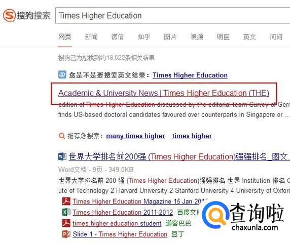 在搜狗搜索引擎中输入关键词“Times Higher Education”