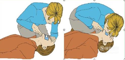 为使空气不从鼻孔漏出,此时将头向后仰,开放气道,可用一手将其鼻孔捏住,然后救护人嘴离开,将捏住的鼻孔放开,并用一手压其胸部,以帮助呼气。