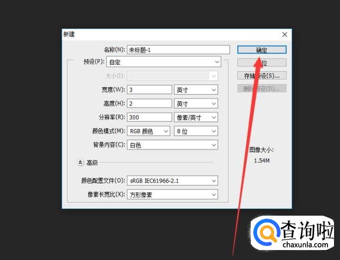 在该页面新建一个画布,设置完画布参数,点击“确定”即可,如图所示。
