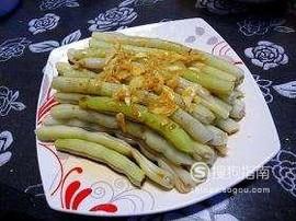 最后我们将大蒜切成蒜末,把蒜末倒在芸豆上面,为了增加口感我们可以加入一些麻酱。