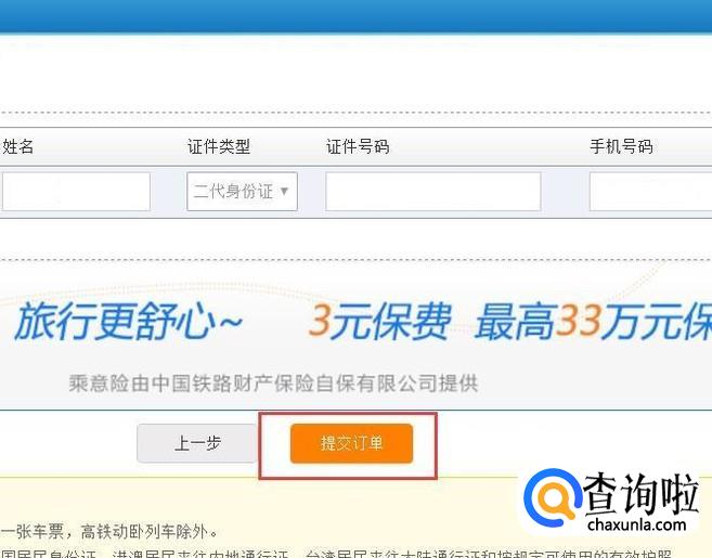 接下来,选择好乘车人之后,点击“提交订单”按钮。