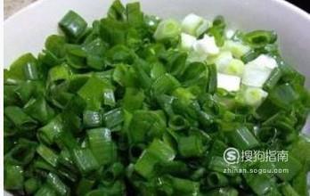 准备配料,将小葱洗净切碎备用,小葱多切一点,两颗鸡蛋打散备用。