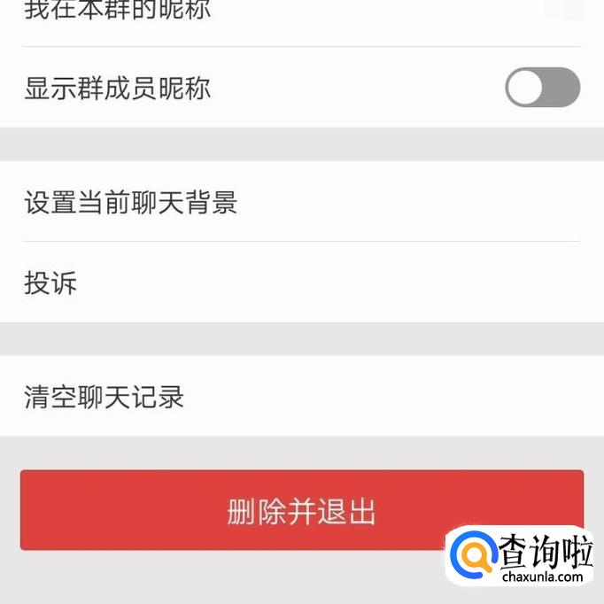 将所有成员移出之后,将界面往下滑,找到“删除并退出”,也就是最显眼的红色,点击之后,就可以彻底解散群聊了哦!