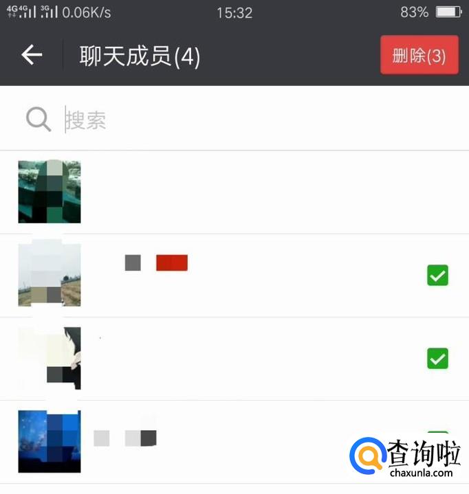 我们可以看到群内成员,解散群聊也就是要把所有成员移出去,点击下方的那个“-”符号,然后选择全部成员,接着点击右上角的“删除”。