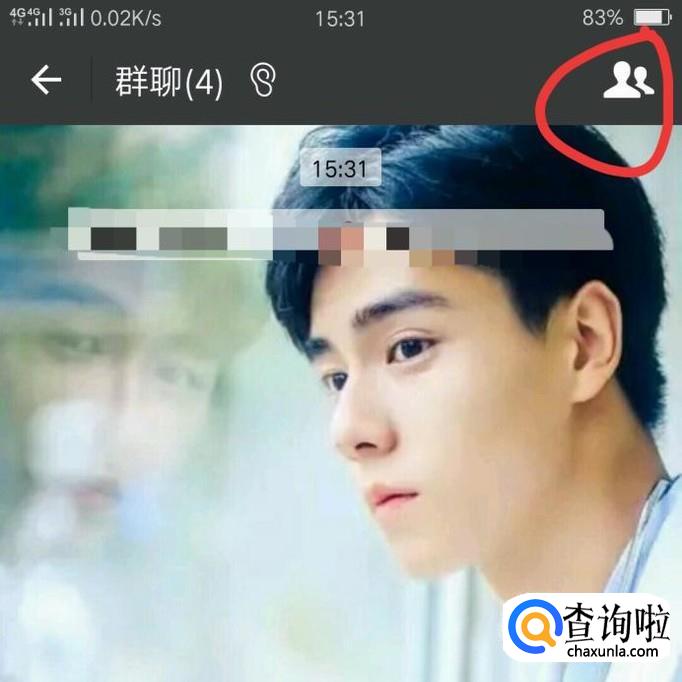进入群聊聊天界面之后,点击右上角小编框起的地方,点击之后会进入下一界面。