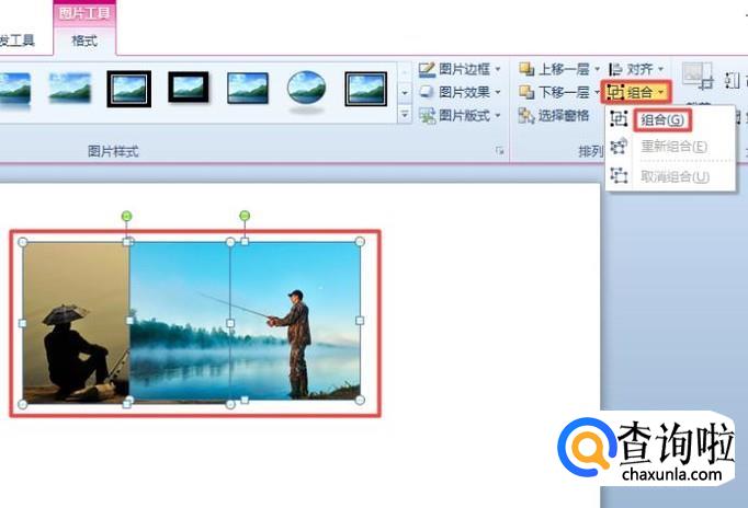 然后我们适当的调整一下两张图片的位置,之后我们点击组合,弹出的界面,我们点击组合;