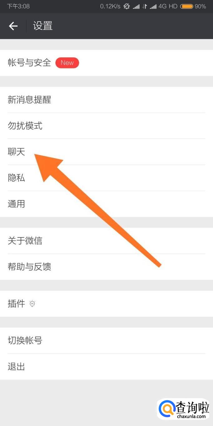 然后点击进入“聊天”设置选项。