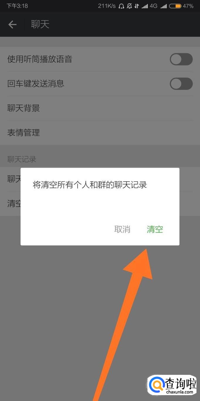 最后点击“清空”即可马上清空个人和群的聊天记录。