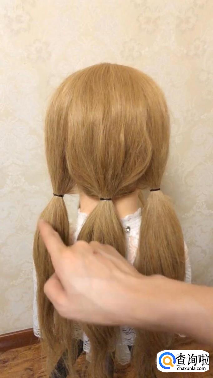 取出中间扎好的头发,用手指将头发分成粗细均匀的四份。