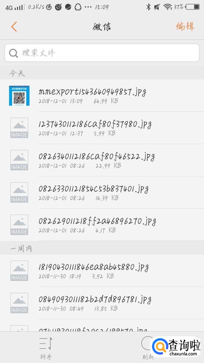 这里就是所有你微信接收过的文件了,点击左下角的“排序”选项,如图1箭头所示。