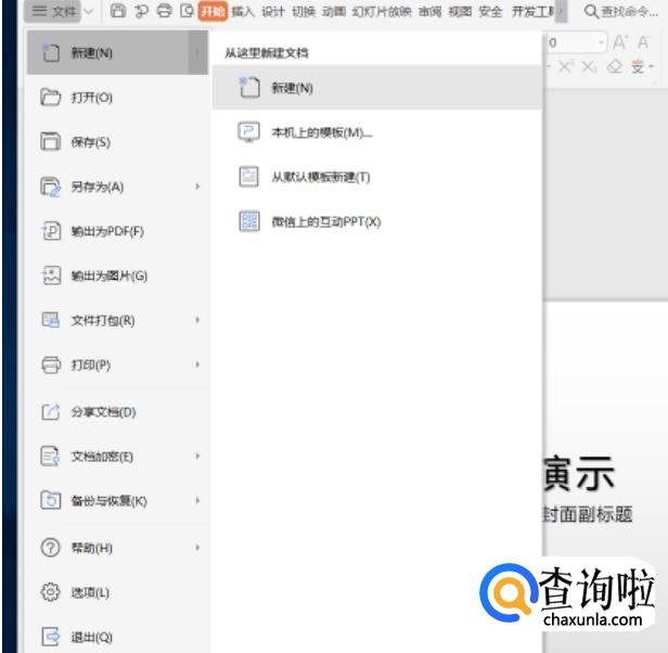 我们先新建一个PPT,打开软件之后,点击菜单栏上的“文件”。