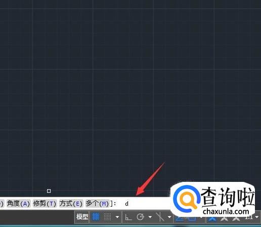 点击倒角选项我们在命令行内输入d命令,如图所示: