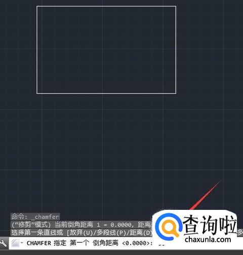 输入第第一倒角距离之后我们按下回车键,要求输入第二个倒角距离,我们再输入50,然后按下回车键依次选择矩形的两个边,可以看到这个角就进行了倒角处理,如图所示: