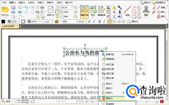 如果我们想要删除文字段,可以用鼠标右键点击文字段,在弹出的选项中点击删除按钮,对文字段进行删除。