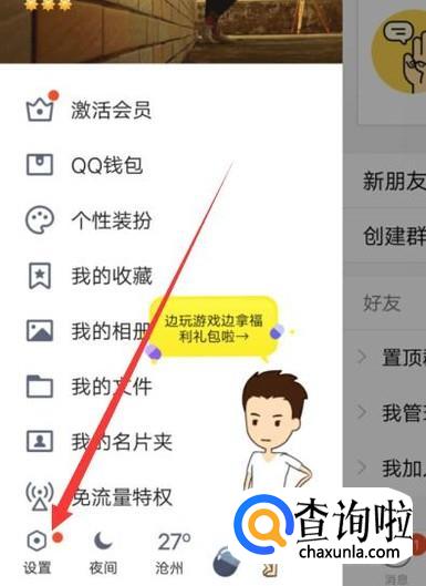 进入之后,点击左上角的头像,然后点击设置,如图所示。