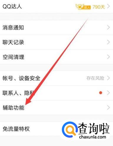 在设置页面,点击“辅助功能”,进入下一页面,如图所示。