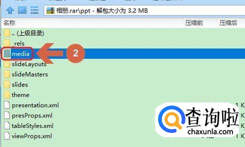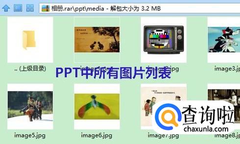 接下来我们依次双击其中的文件夹“ppt”-“media”,然后在media文件夹中即可看到该幻灯片中所有的图片列表了;