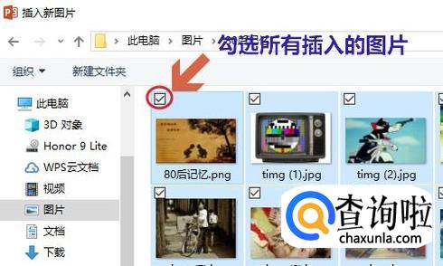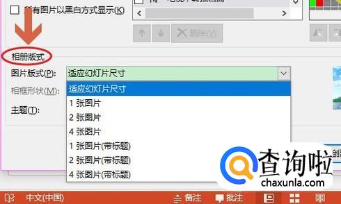 双击打开相册以后,勾选所有要添加的图片,然后依旧在该对话框,我们还可以设置图片的版式以及主题等内容;