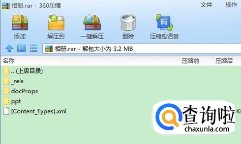 首先我们找到这个PPT文档,也就是后缀名为.pptx的文件,如图一所示,然后我们将后缀名更改为.rar格式,这样文件就变成了压缩文件,双击该文件即可弹出图二的解压界面...