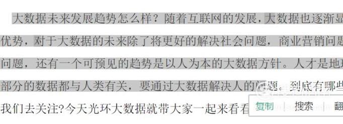 然后,我们把要复制的文字用鼠标打上阴影,此时可以看到弹出的功能按钮,我们点击“复制”,内容就复制完成了。
