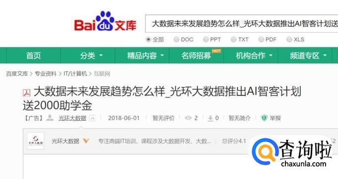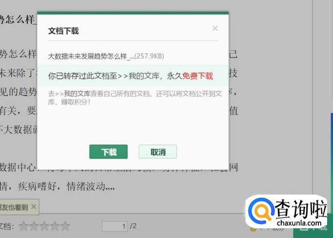 首先,我们在百度文库里打开一篇文章,比如这篇“大数据未来发展趋势怎么样”。