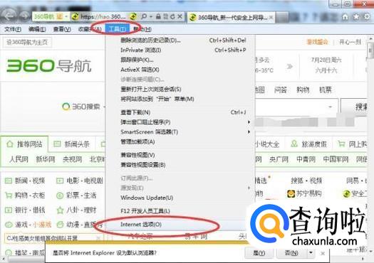 首先打开IE浏览器,然后点击【工具】,在弹窗的下拉菜单中选【Internet选项】,如下图所示:
