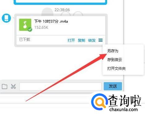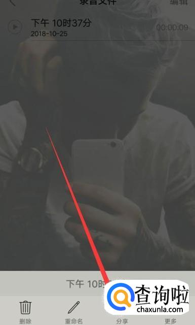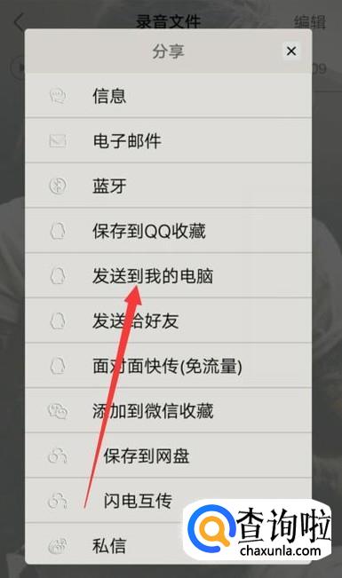 长按一下需要导出到电脑的录音,点击“分享”,进入下一页面,如图所示。