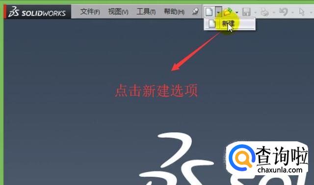 首先打开SolidWorks软件,点击顶部的新建选项,如下图所示