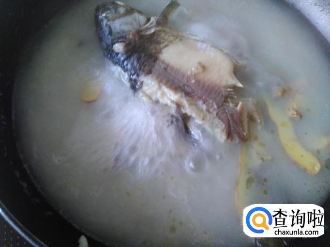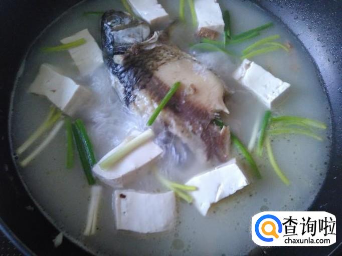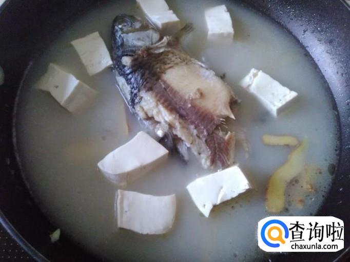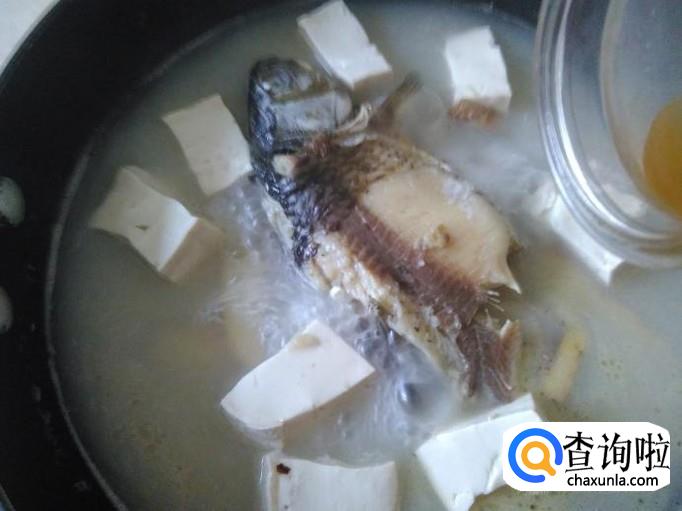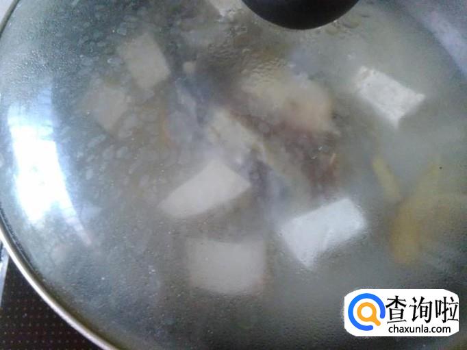 炖到汤水变成奶白色,然后加豆腐进去,再盖上盖子炖4分钟左右。