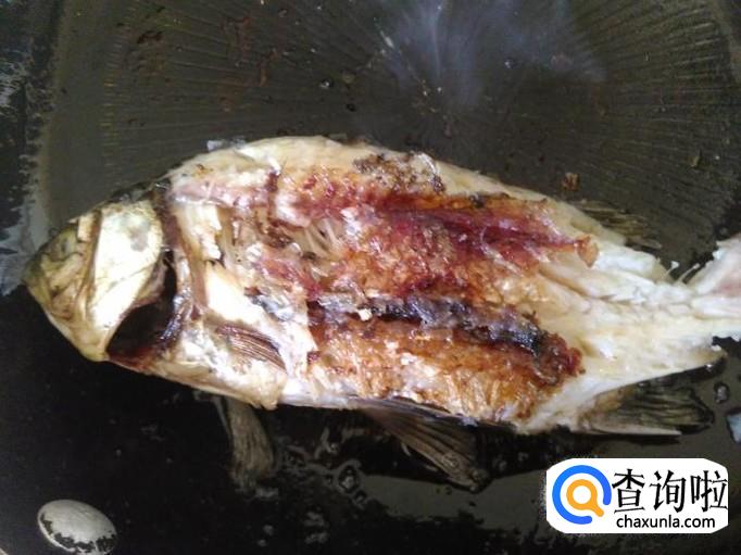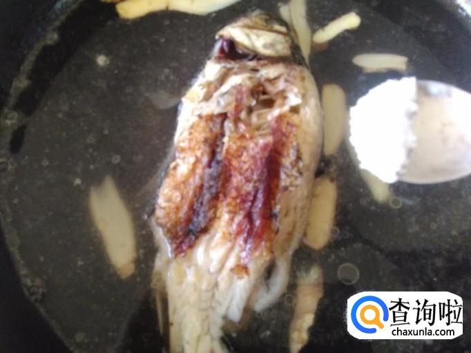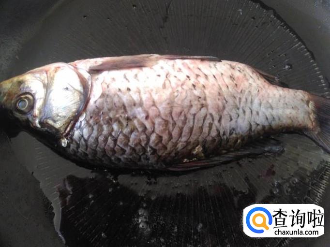 热锅下油,放鲫鱼进去用小火煎至两面焦黄色。