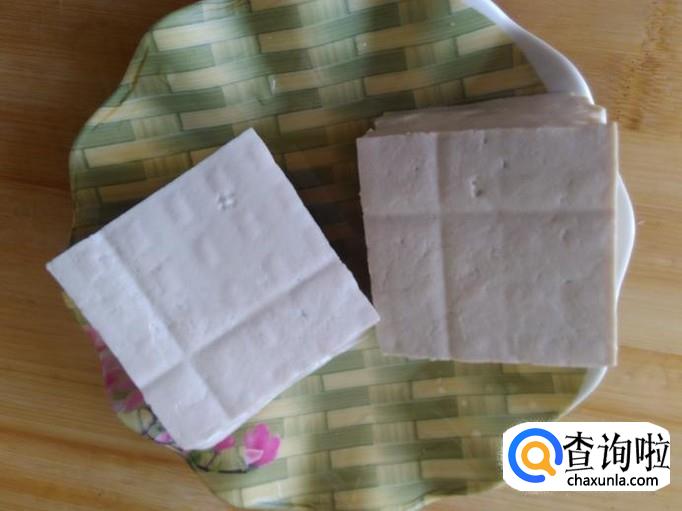豆腐切成小砖。