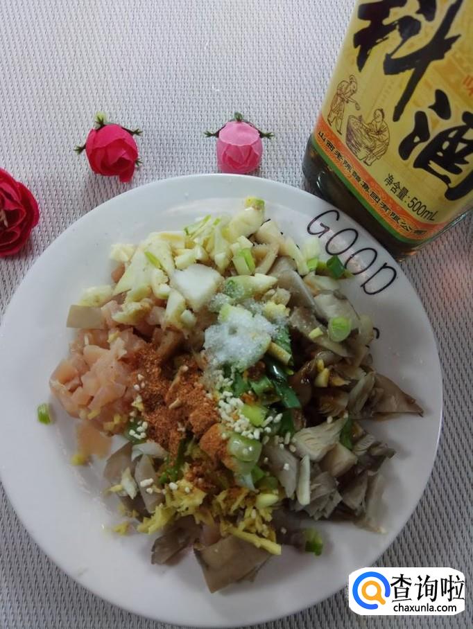 准备适量小葱,姜,蒜,将它们切碎后,放入盘中,然后加入适量盐,鸡精,五香粉,生抽,料酒,搅拌均匀,腌制十分钟左右。