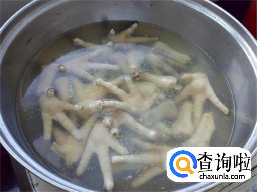 之后,凉水下锅倒入鸡爪,等水沸腾之后再煮十分钟,鸡爪就能煮熟,然后将煮熟的鸡爪捞出晾凉。
