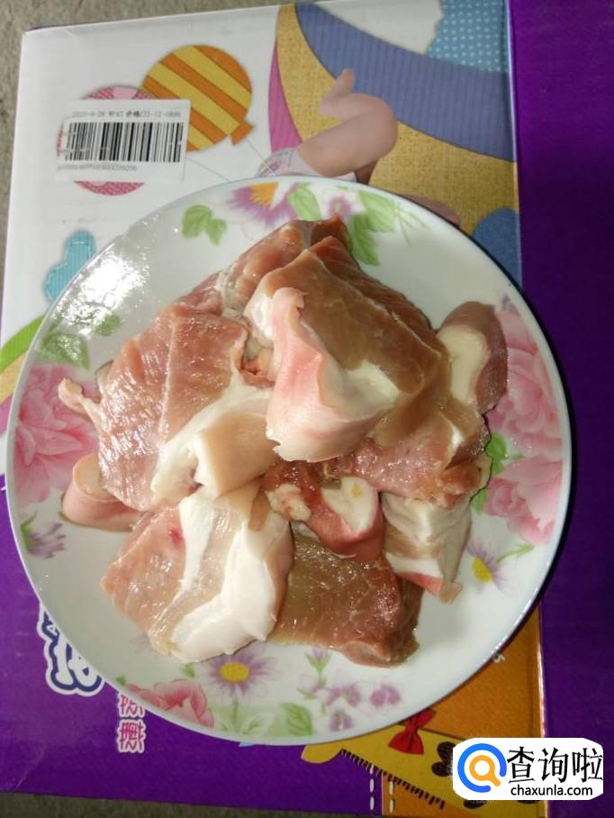 我们今天用的五花肉是前腿肉,不小心买到的是瘦肉偏多的,最好的肉应该是前腿肉且肥瘦相间的,才会最好吃;