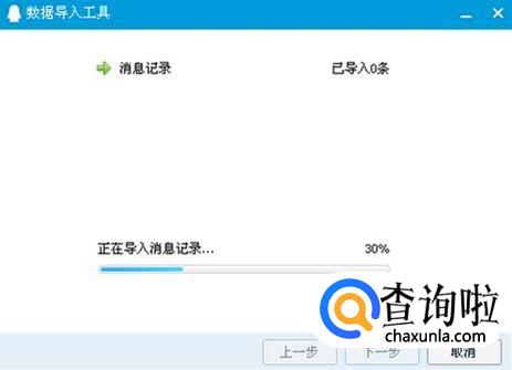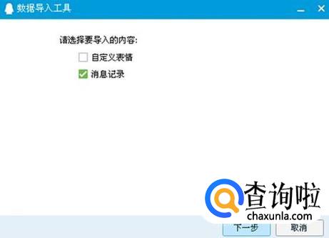 要导入的话,还是点上一步那个三角箭头,选“导入消息记录”,在出现的对话框里点选“消息记录”,再点“下一步”。