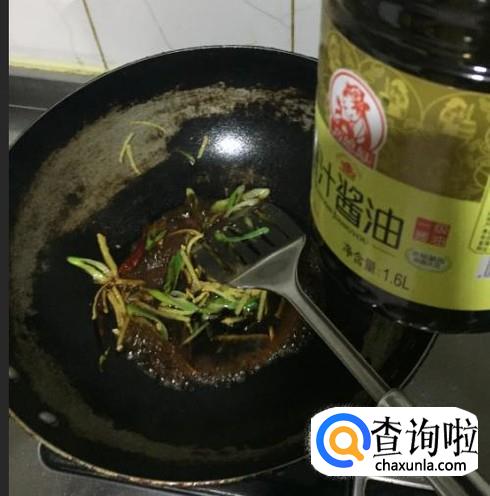 锅里加少许油,先把葱丝姜丝和辣椒爆香。