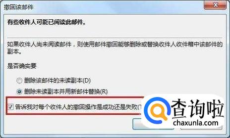 单击“删除该邮件的未读副本”或“删除未读副本并用新邮件替换”,然后单击“确定”。