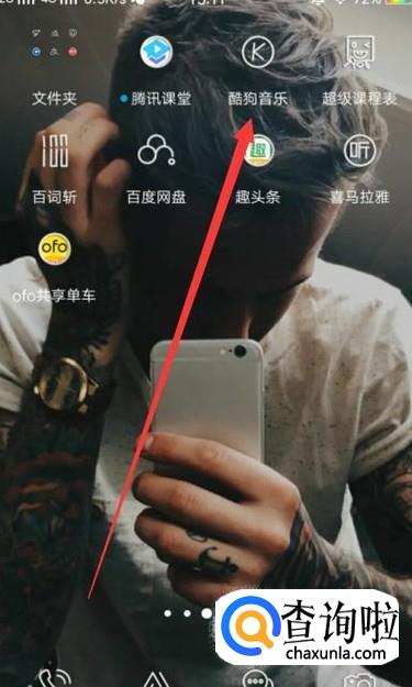 打开手机,找到酷狗音乐,点击并进入,如图所示。