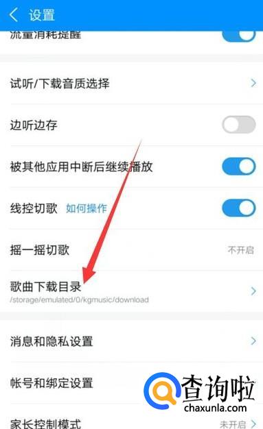 进入之后,点击“歌曲下载目录”,进入下一页面,如图所示。