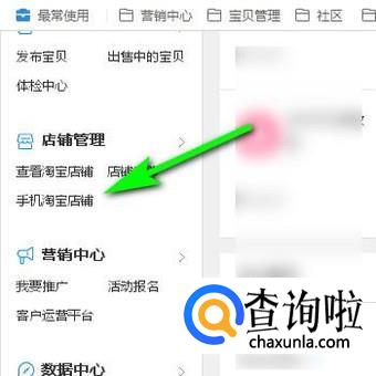 在页面的左侧功能导航这里,找到并点击:手机淘宝店铺