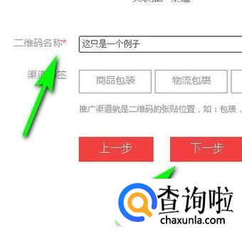 跳转到另一个页面,在这里设置商品二维码的名称,再点:下一步。