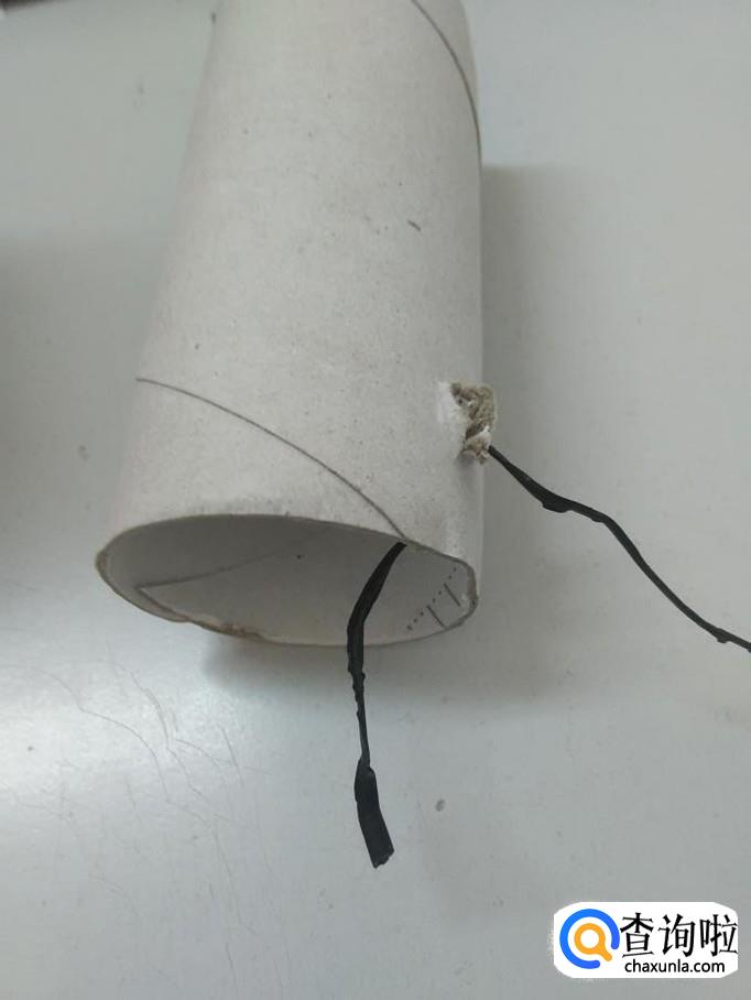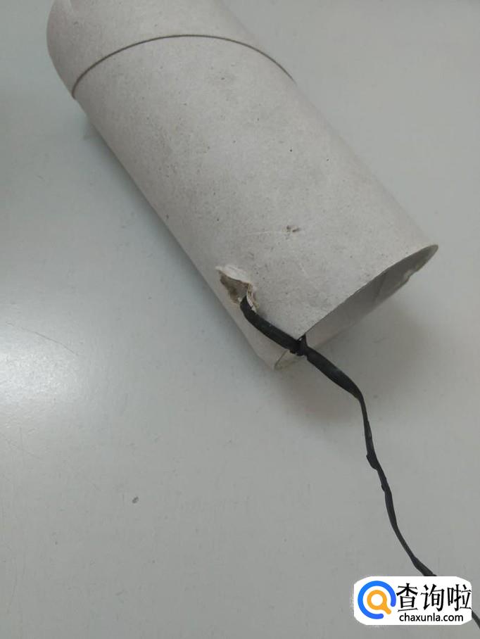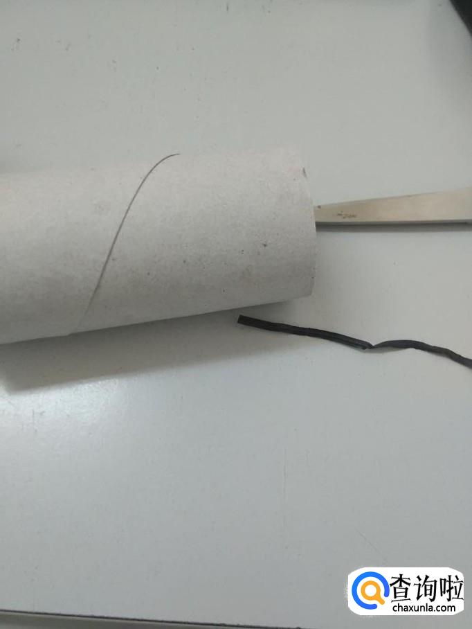 准备一个卷纸筒、一把剪刀、一条粗绳。绳子要粗一些,以防和小猫玩的过程中被拉断。