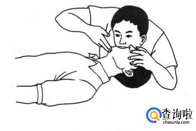 进行人工呼吸。释放呼吸道后,开始进行人工呼吸。人工呼吸应和胸部按压交替来做,大约每30秒的胸部按压就要做2秒的人工呼吸,每次通气的时间应不少于2秒。