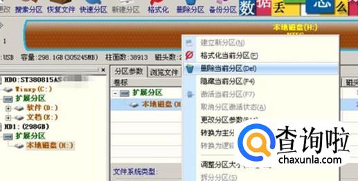 在上面的移动硬盘空间上右键点击一下,在弹出的对话框上点击“删除分区”,接着确认删除。