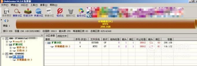 我们下载安装一个“DiskGenius”分区软件,打开后界面如图,可以看到移动硬盘原来的分区情况