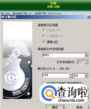 在出现的界面里会看到软件自动选定为“逻辑分区”,我们根据自己的需要把下面的“新分区大小”改为合适的数字。