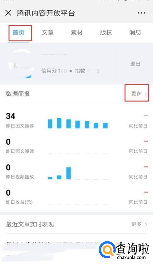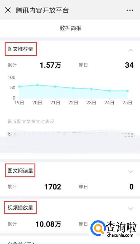 点击“更多”,我们能看到更加详尽的后台数据,如近六日的图文推荐量、图文阅读量、视频播放量等等。