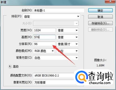 打开ps按下Ctrl+N键在弹出的对话框内设置参数如图所示: