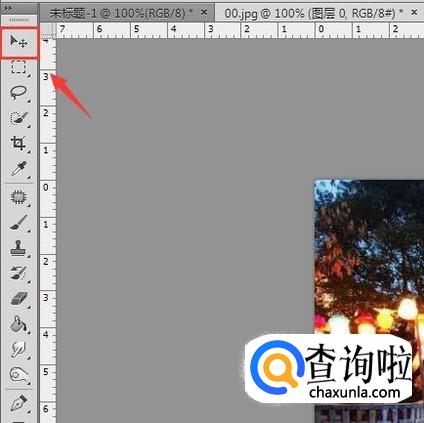 打开图片之后双击图层将其解锁,再在工具箱内找到移动工具,如图所示: