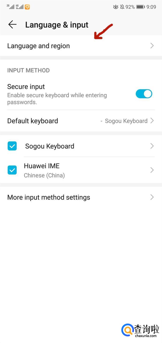 进入之后在“语言和输入法”(language&input)中,找到“语言和地区”(language®ion)设置选项,点击进入。